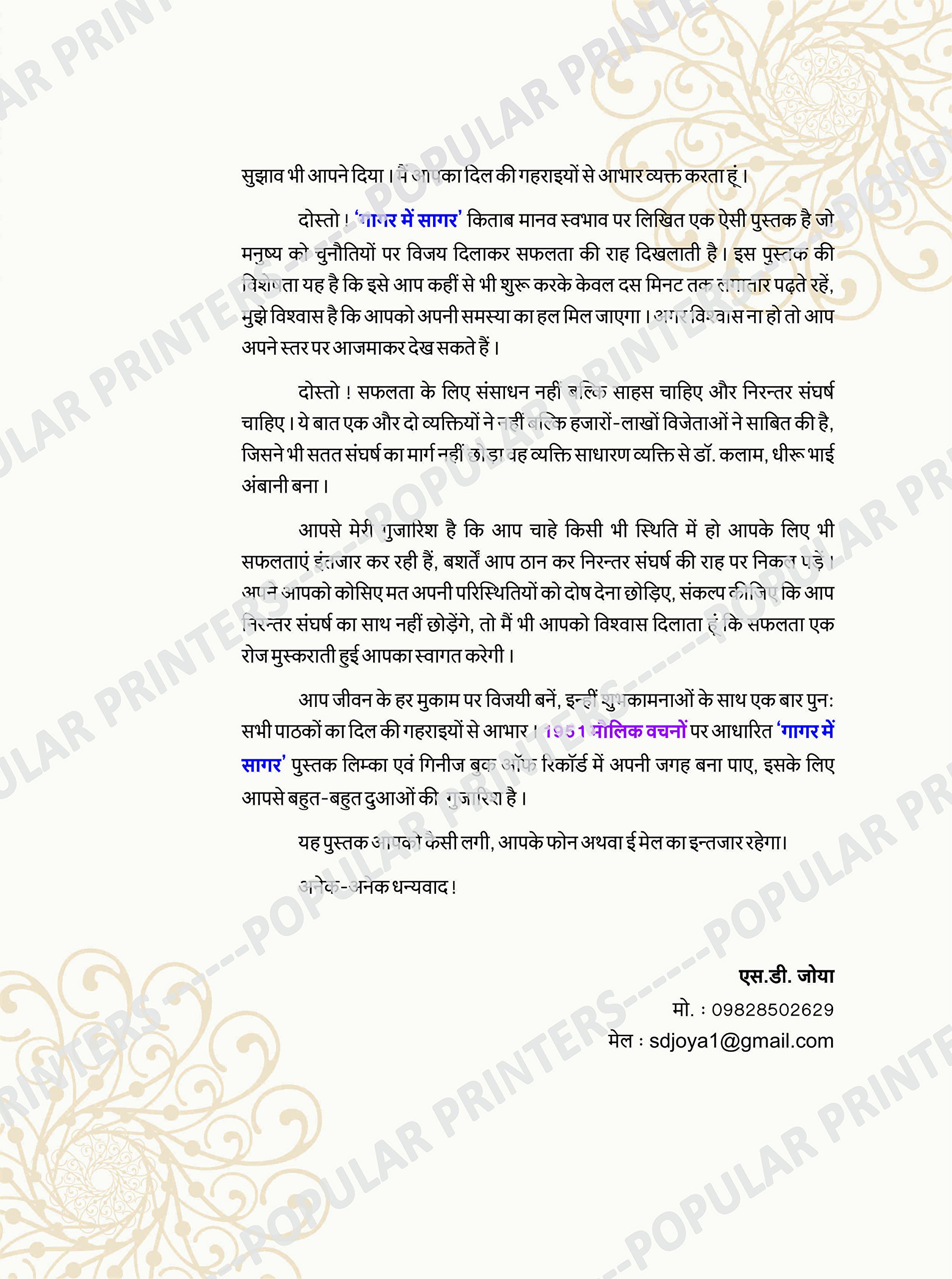 by Motivational Speaker S.D. Zoya.