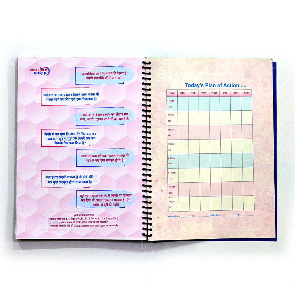 Presenting the exclusive Trophy Infallible Shots Spiral Spiral Bound, which is fit to be used for Office Staff, School, College, Coaching Students and even as a Gift! The Notebook comes with ,Includes 8 specially designed motivational pages with Hindi quotes, that gives this notebook a very special meaning both as a personal belonging, This notebook is perfect for regular working. 280 Single Line Pages.