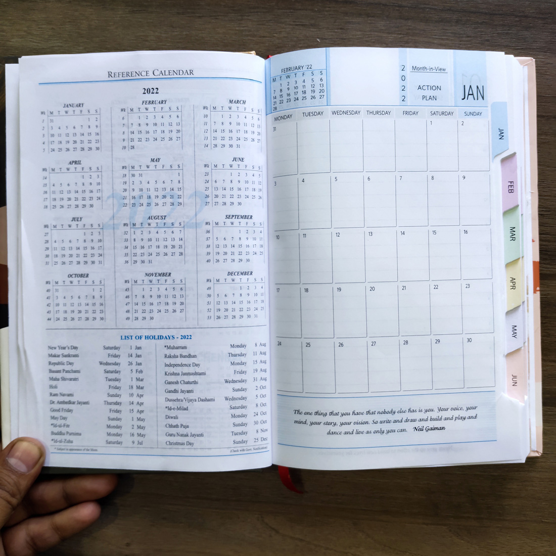 * Important notes for each month, Motivational Quote on Each Page that gives this diary a very special meaning both as a personal belonging or even as a gift. The Vibrant colors of this diary will definitely fill your day with a lot of positivity -So, own this beautiful copy with the hopes of a beautiful new year 2022!